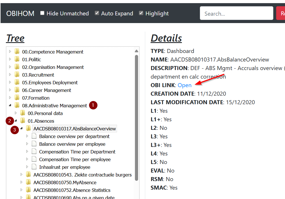 Afin de pouvoir avoir un aperçu individuel ou pour le département de la situation des congés pour les membres du personnel, vous devez vous rendre dans les rapports OBI.