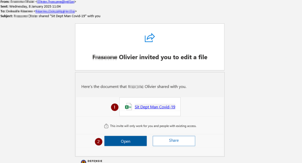 Lorsque vous cliquez sur le bouton « Open » vous êtes redirigé via votre navigateur internet « Edge » vers le fichier qui s’ouvre via Excell en ligne et se présente de la sorte :