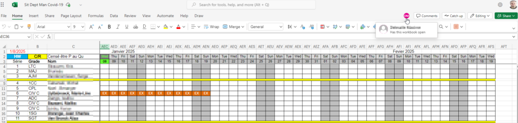 Comment ajouter ses présences au tableau de gestion des présences pour le Det SP & l’Etat-Major.