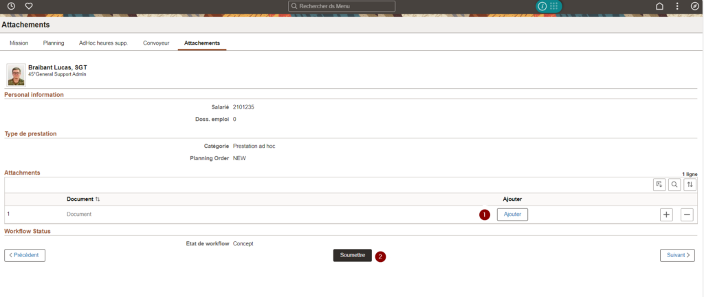 Votre page est ainsi complétée, il vous reste maintenant à ajouter le fichier signé par votre chef de service comportant un résumé de l’ensemble de vos heures de compensation.