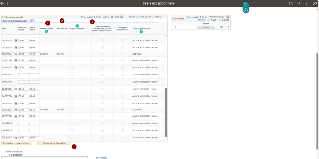 1. Option « Choice for allowance » : Cette case est à cocher si vous souhaitez vous faire payer les heures irrégulières.
